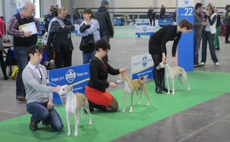 Ve čtvrtek posuzoval maďarský rozhodčí Erdosz Laszlo, u něj jsem již byla s Ronjou, mámou Fansy. Očekávala jsem, že by u něj Fansy mohla uspět. Jasně, nevěděla jsem, jakou bude mít konkurenci. Whippetů bylo celkem pouhých 13 a Fansy měla ve své třídě - mladých fenku Fierce Fireball Anticyclone - V2. Fansyčka získala ocenění V1, CAJC !!! Bohužel výsledky neměla majitelka ani jeden den, pouze mi psala jména přihlášených whippetů ve třídách.