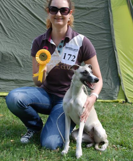 27.08.2013 18:03Bratislavské Klubové výstavy KCHCH SK se zůčastnila Fansy - Fantasy Edition Petula-Vera. Stále ještě ve třídě dorostu. Jako fenečka tam byla sama, pejsci ve tř. dorostu byli 3. Fansička s pěkným posudkem získala známku velmi nadějnou, posuzovala Andreja Nowak ze Slovinska. Mně velmi dobře známá rozhodčí. (v roce 2007 jsme u ní na speciální výstavě získali jako chovatelská stanice 2x CAJC, 2x CAC a Lenci CAC,VSV,BOB!!) O nejlepší štěně porazil Fansy whippetí pejsek :-) Oběma holkám moc gratuluji !!!