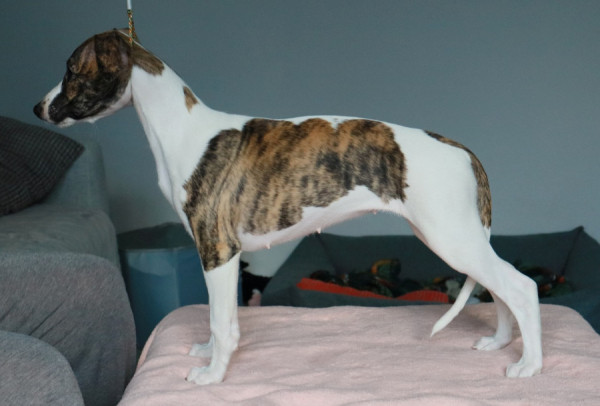 26.7.2025 Klubová výstava Whippet klubu Bordovice - třída dorostu: Velmi nadějný 1, Nejlepší dorost klubové výstavy/ very promising 1, Best Puppy in Club Show (3 psi) - judge A.Kochan PL